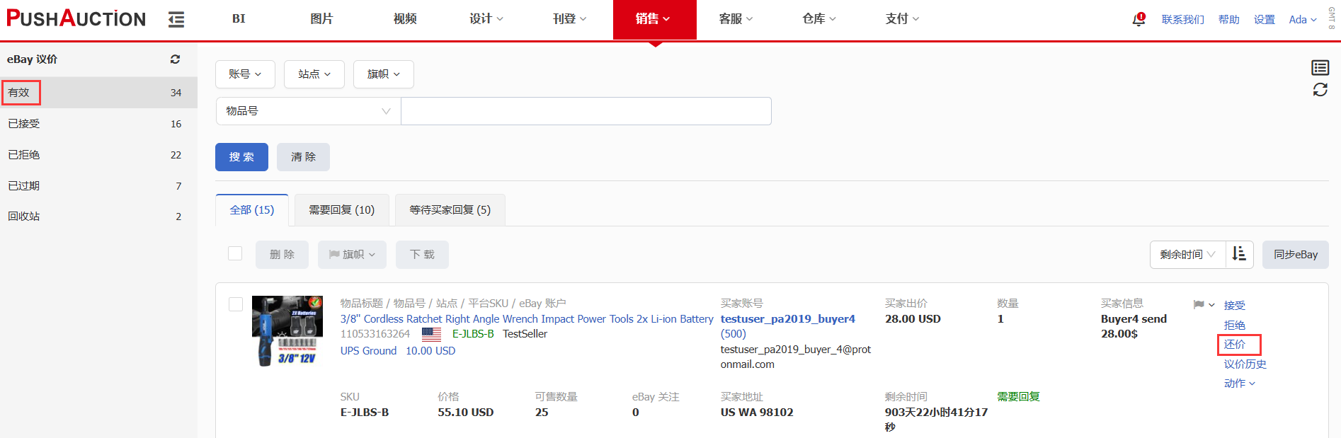 注意: 若您作为买家在 eBay 站点提交了议价给其他卖家,则在收到卖家的还价后,您只能继续还价或不做处理。买家没有接受或拒绝还价的权利。