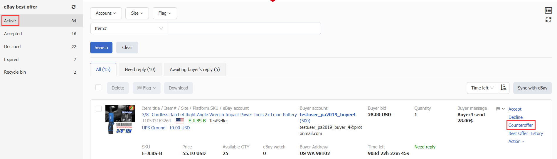 Once you've received a best offer from a buyer, please make a proper decision with consideration of the predefined listing info and provided offer details from buyers, such as the concerned QTY, unit price, destination country and note (if any) etc. If the offer still has space to negotiate, you can make a counteroffer. If it lives up to your expectation totally, you can accept offer. If it's far away from your expectation, you can decline offer.