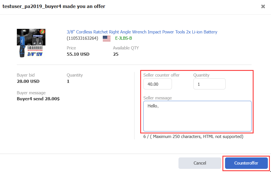 Step 2: Enter unit price and QTY, and attach additional terms if necessary > Click [Counteroffer].
