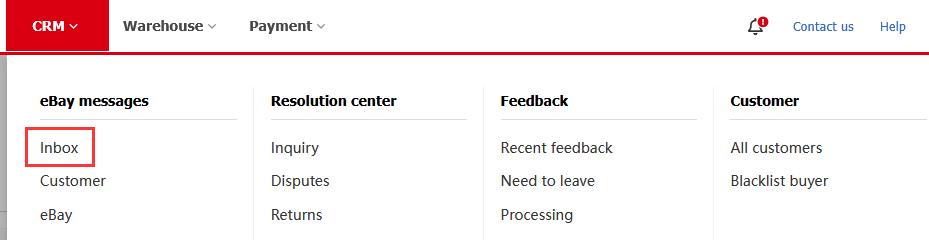 Path: Click 【CRM】 > 【eBay messages】 > 【Inbox】 .