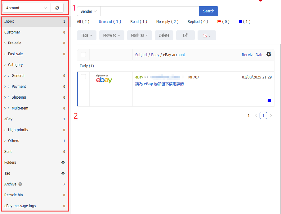 Click any message to view its detailed content on the right panel. For instructions on replying messages, please refer to Reply eBay Messages .