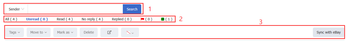 - Bulk Actions Bar: Perform batch actions such as tagging, moving to folders, marking as read/unread/replied, deleting, opening in a new tab, applying square color icon,synchronizing with eBay.