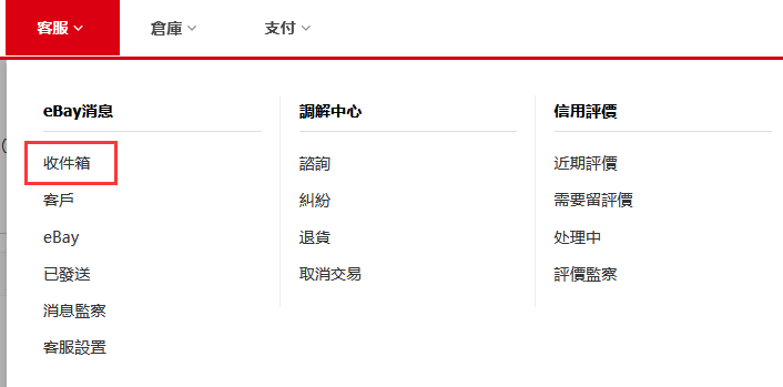 第一步:點擊【客服】>【eBay消息】>【收件箱】;