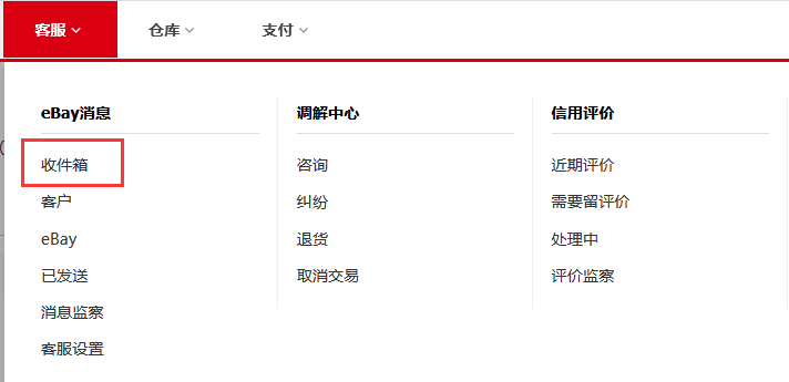 第一步:点击【客服】>【eBay 消息】>【收件箱】;