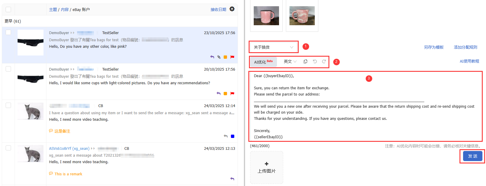 1. 可直接点击打开买家发来的大图,不需要登录到ebay后台。