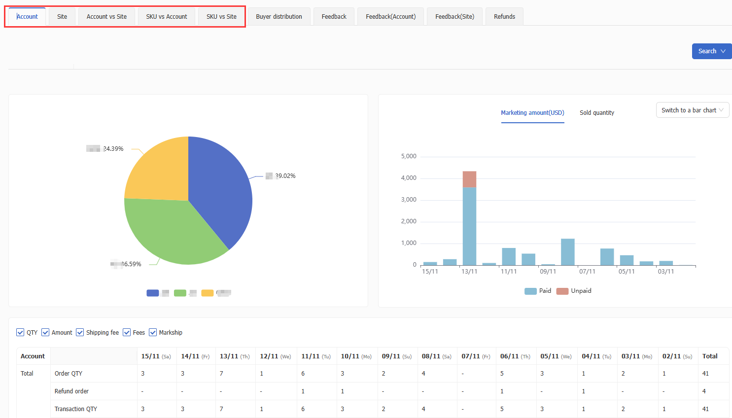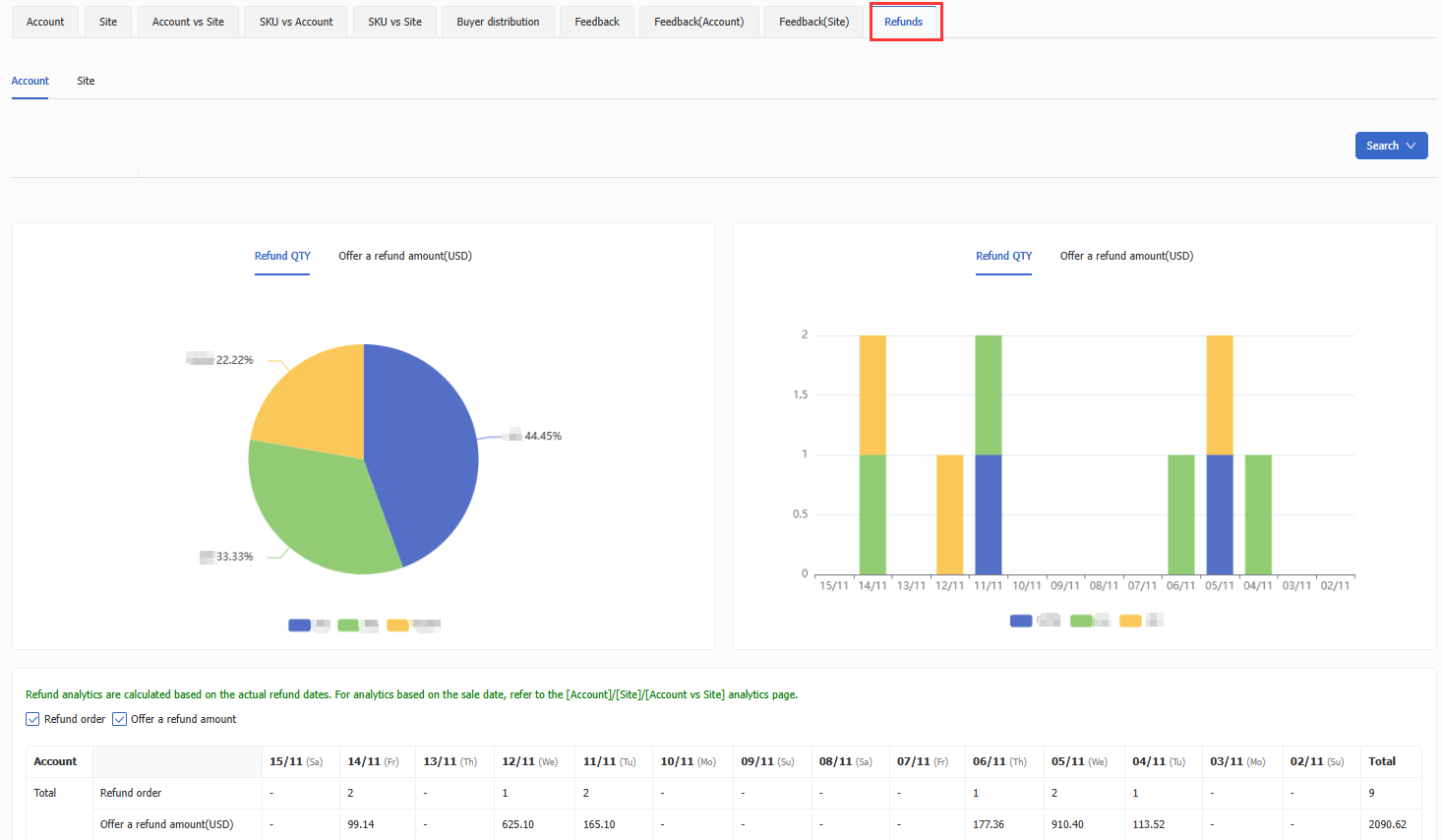 Displays refund data for each eBay account or site—helping sellers fully understand sales performance, improve customer satisfaction, and optimize product quality and service.