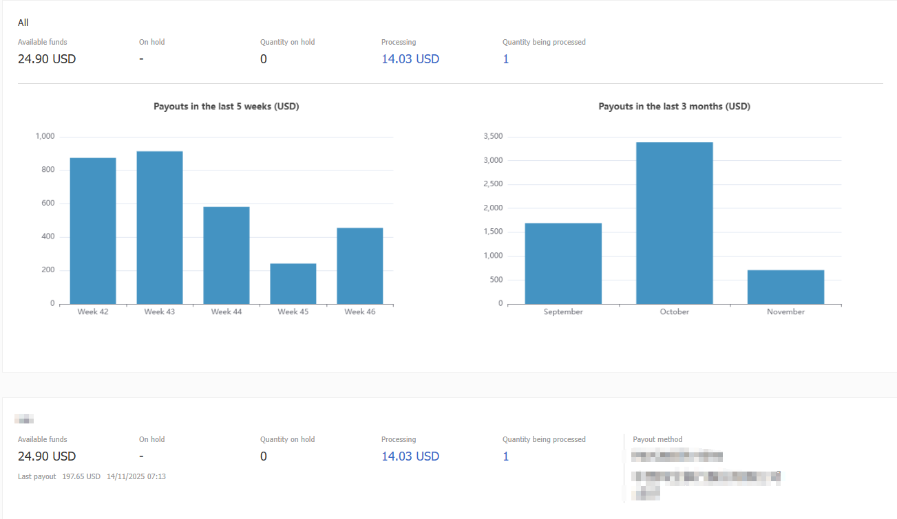 - Shipping Timeliness - Displays shipping timeliness for the past 7, 14, and 30 days, including distribution of shipping times—helping sellers analyze fulfillment efficiency and optimize processes.
