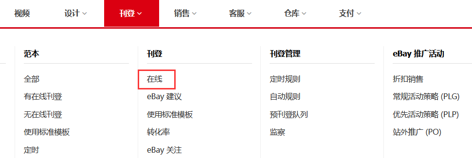 1. 刊登批量应用eBay 商业政策,请参考【在线编辑】功能;