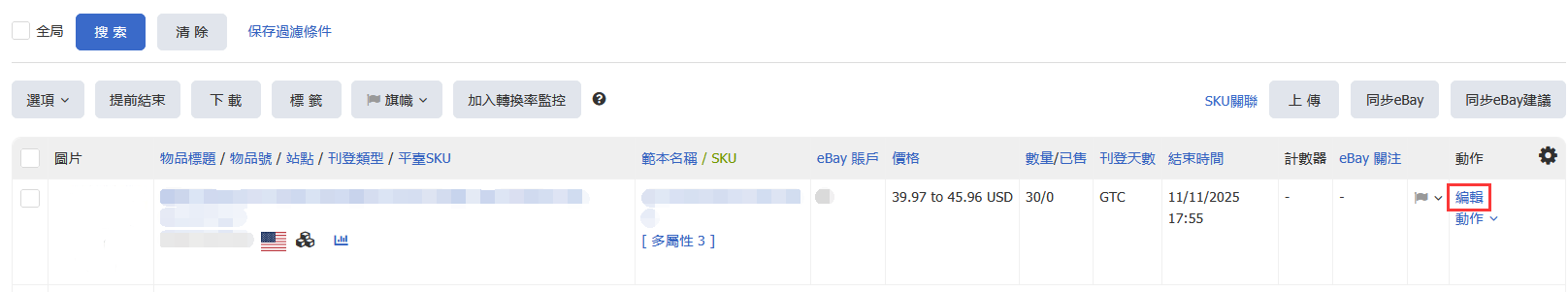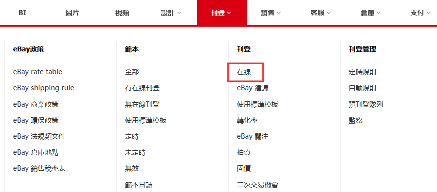1. 刊登批量應用eBay 商業政策,請參考 【在線編輯】 功能;