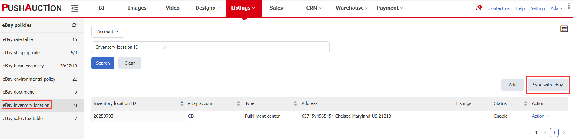If you created locations outside PushAuction, click Sync eBay to import data.