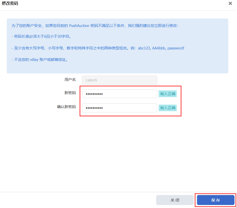 注意:只有主ID才能修改该账户下所有用户的密码,子用户即使具有管理员权限也只能修改自己的密码。