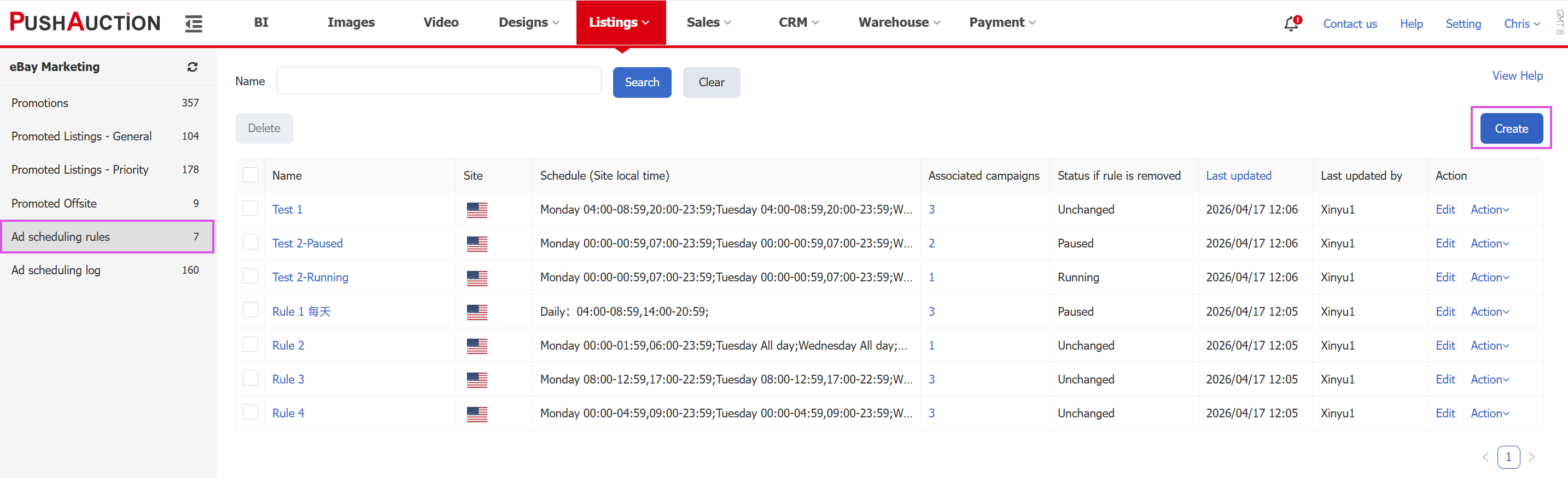 Step 1: Go to Listings > eBay Marketing > Ad scheduling rules, then click Create.