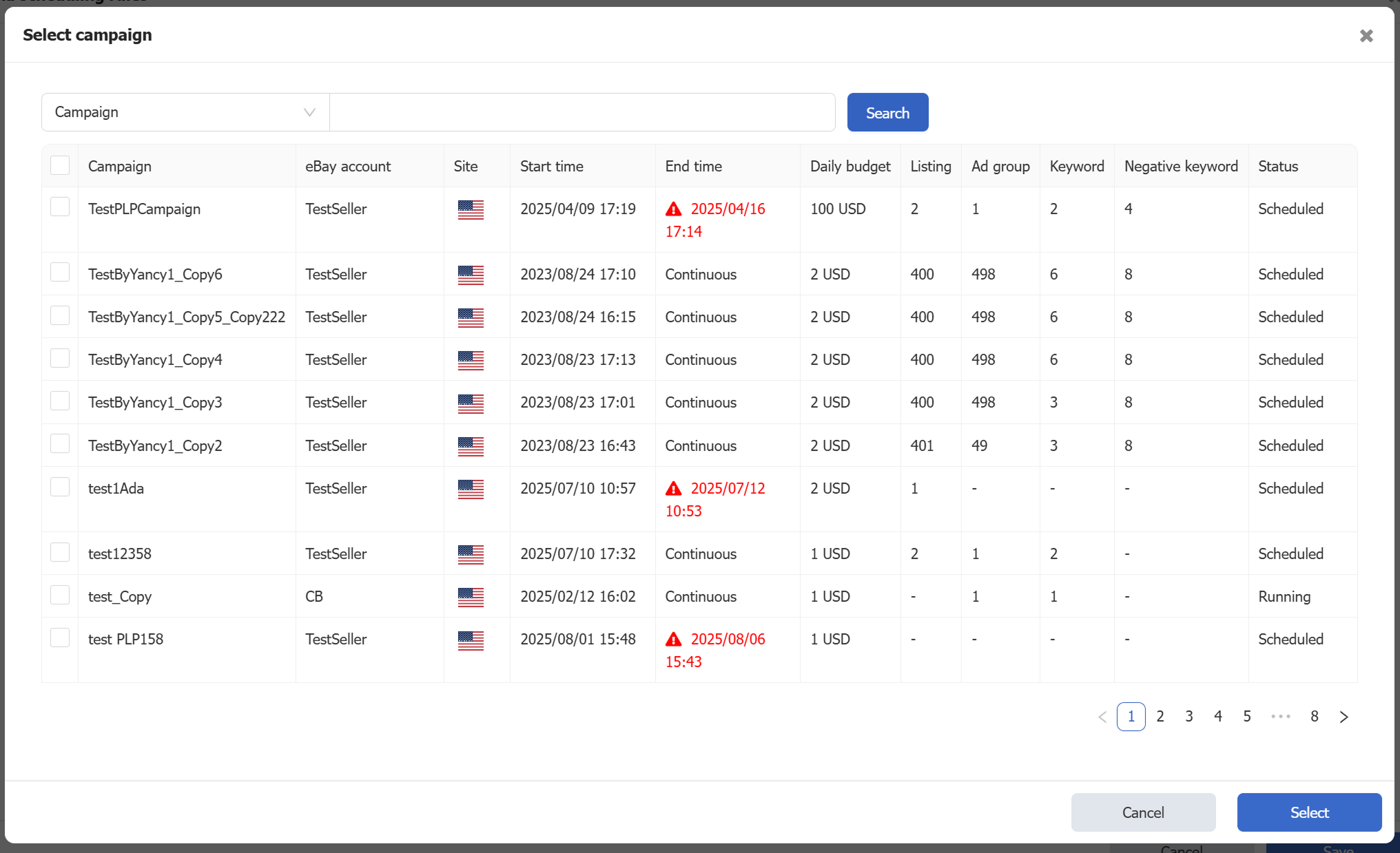 Step 3: Select campaigns.