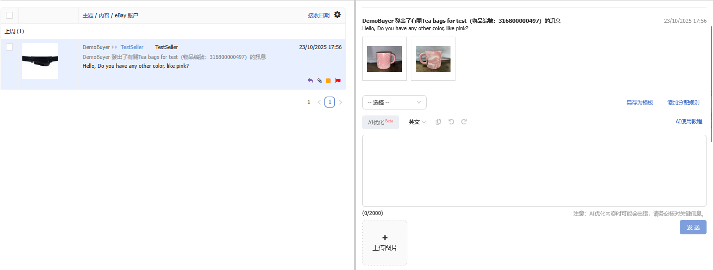 点击任意一条消息,右侧会展开其详情页,回复消息的具体操作请参考 回复eBay消息