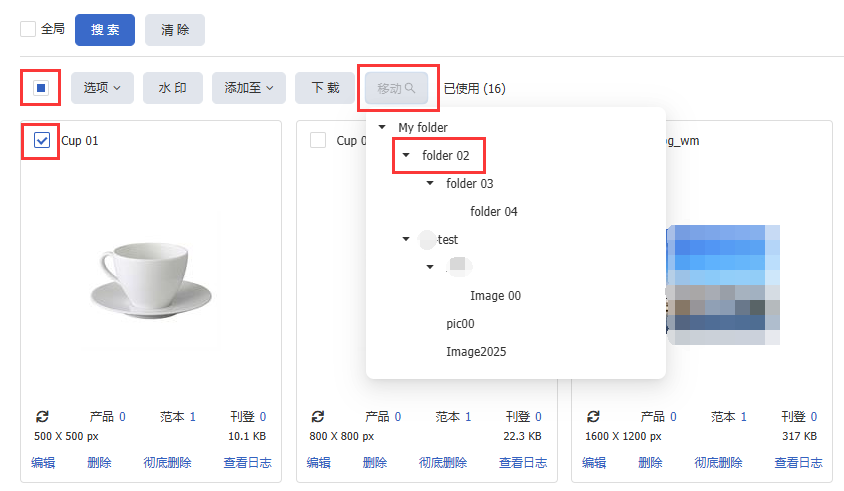 3. 删除文件夹将同时删除其中的所有图片。若图片正在使用,相关内容将受到影响且无法恢复,请谨慎选择。