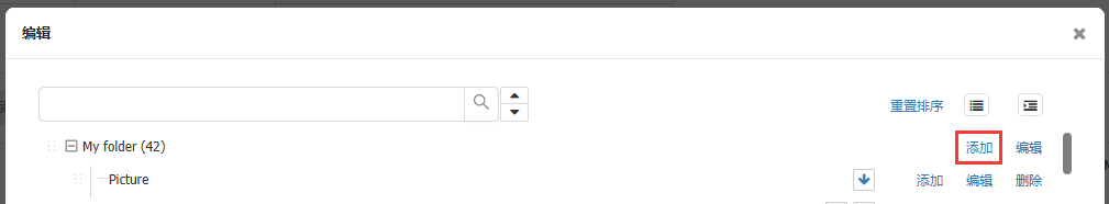 2. 在当前文件夹点击【添加】,创建下一级文件夹