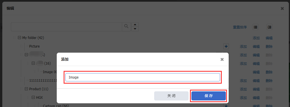 第二步:点击【添加】> 输入文件夹名称 > 点击【保存】。