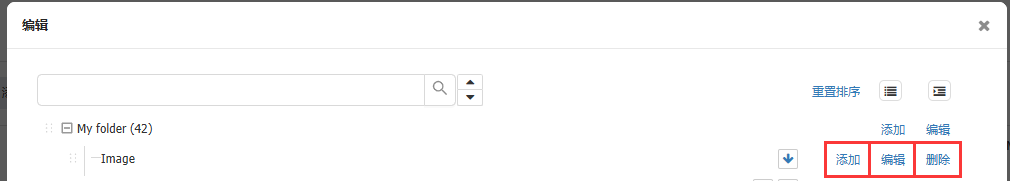 点击【图片】>【编辑】> 在弹出窗口点击【添加】子文件夹 / 点击【编辑】修改文件夹名称 / 点击【删除】文件夹。