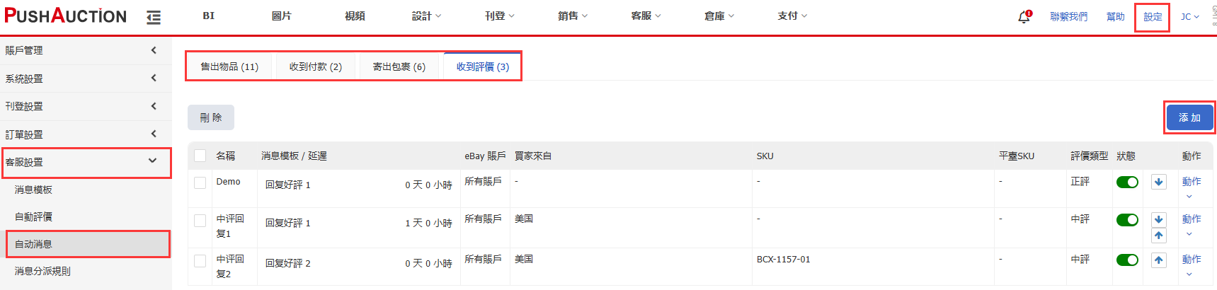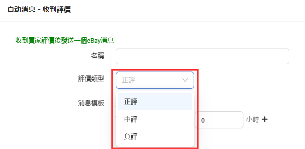 註意: “收到評價”規則的自動消息需要按照評價類型(正評,中評,負評)來分別設置。