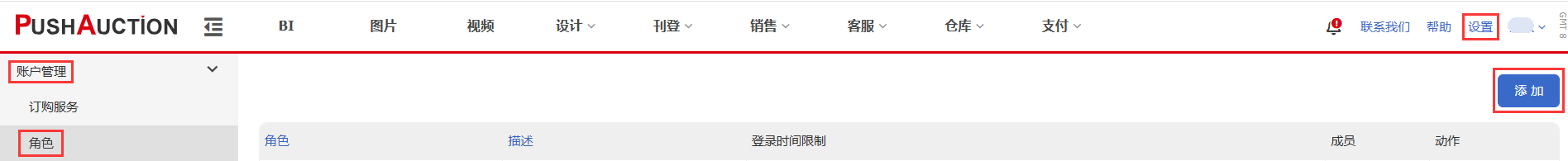 第一步:点击【设置】>【账户管理】>【角色】>【添加】;