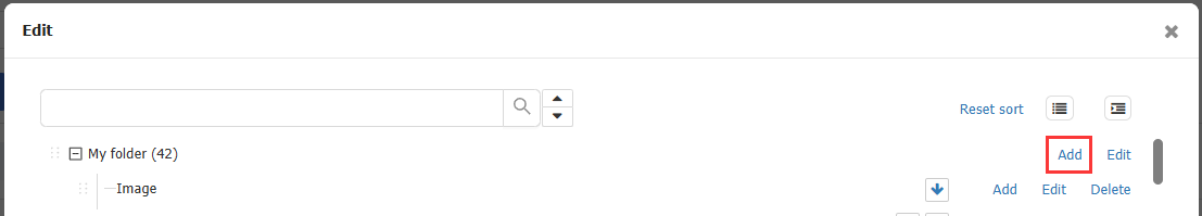 1. Click "Add" in the parent folder to create a folder at the same level;