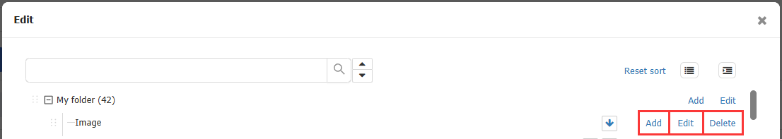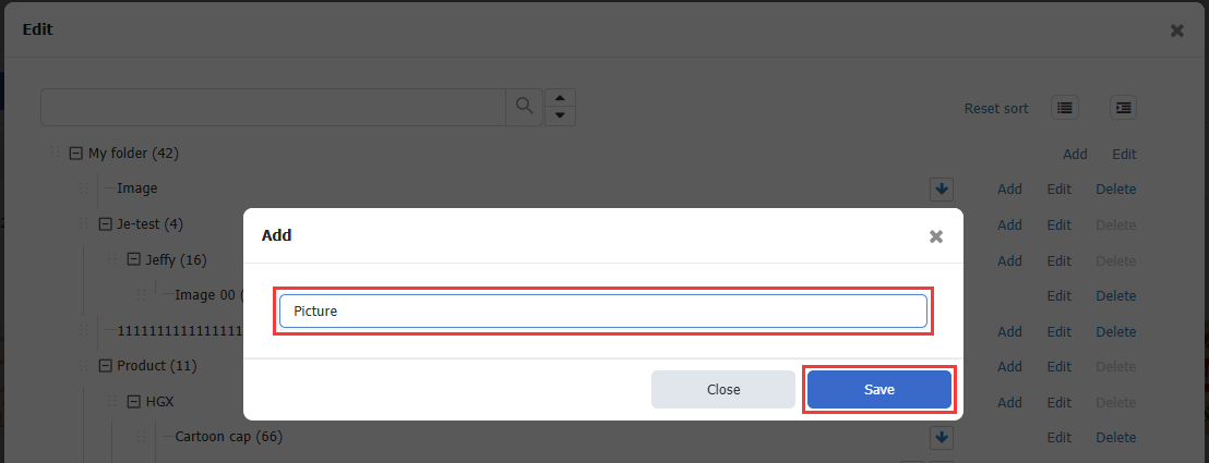Click [Images] > [Edit] > In the pop-up window, click [Add] to create a subfolder / Click [Edit] to modify the folder name / Click [Delete] to remove the folder.