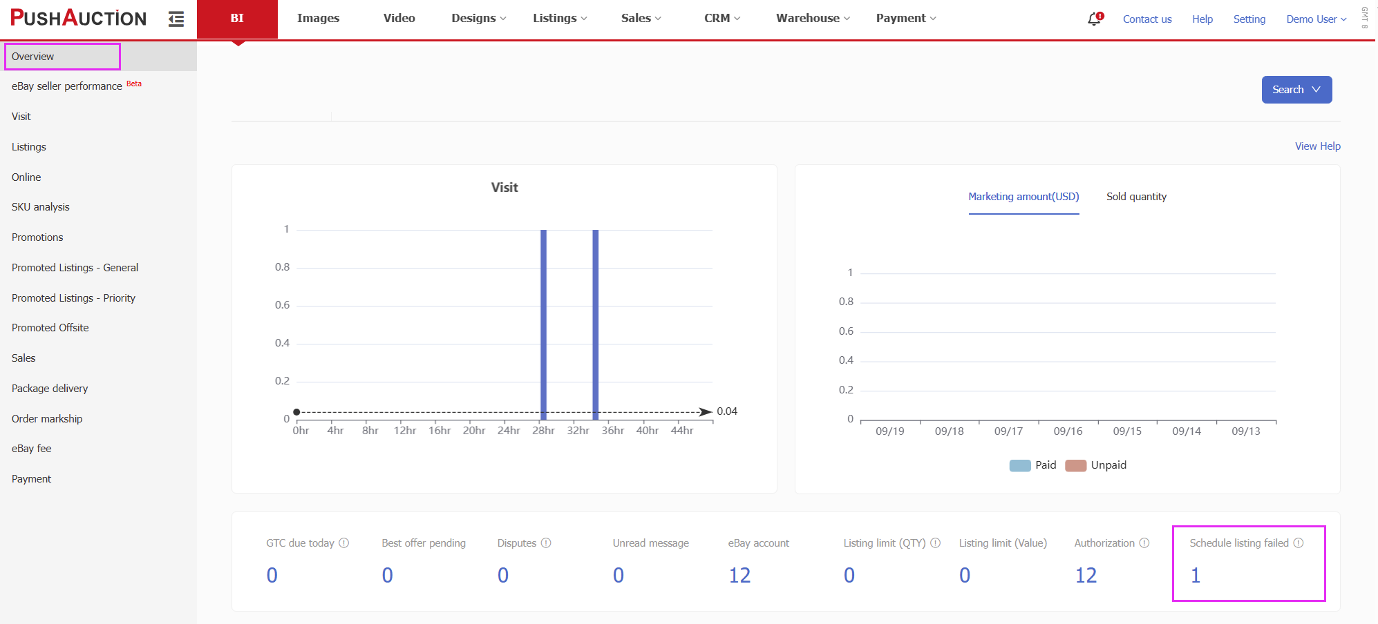 BI > Overview now displays the number of “Scheduled Listing Failures” in the past 24 hours. Click to jump to the monitoring page for details.