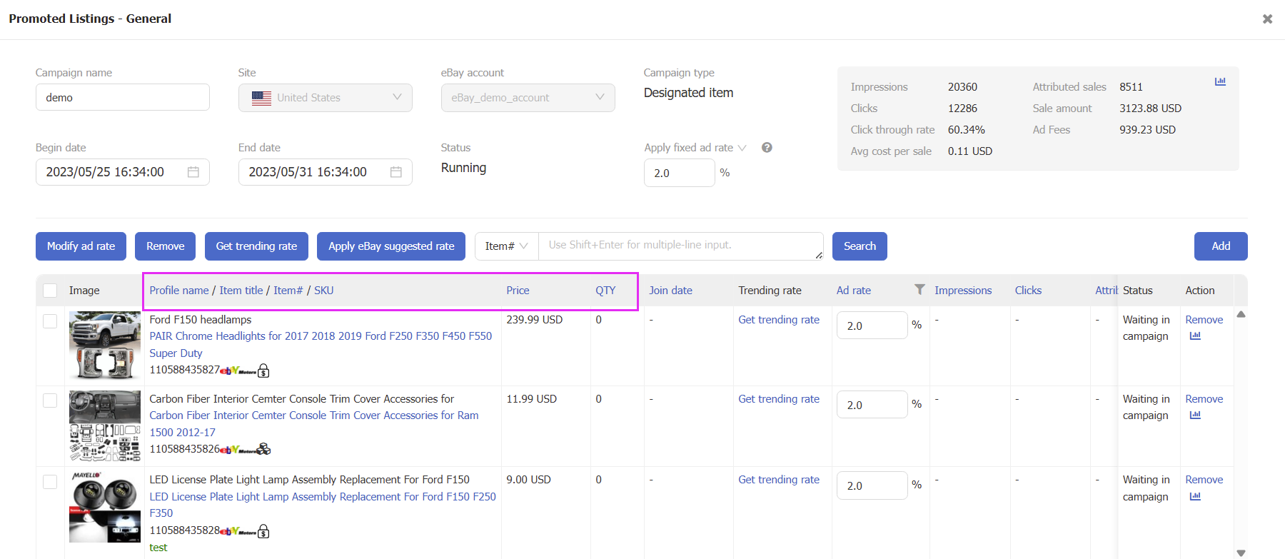 - eBay Warehouse Location: Support for selecting multiple eBay accounts