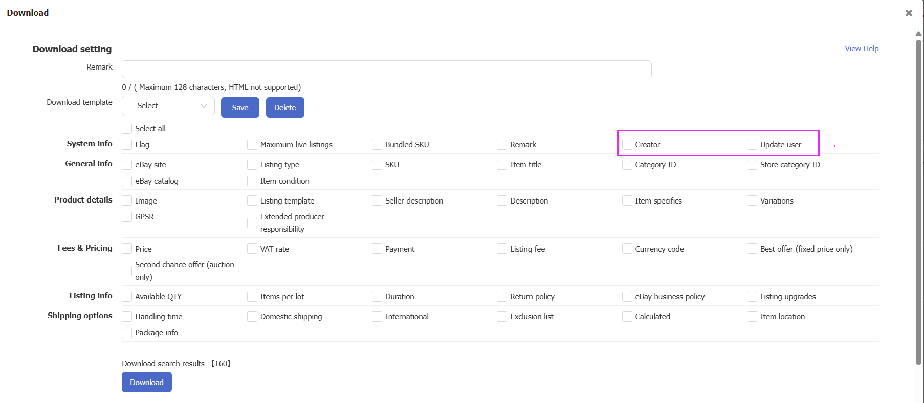 - Template and Listing Downloads: Added “Creator” and “Update user” fields