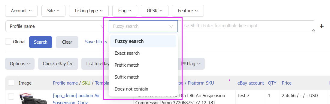 In Profiles > All, when filtering by Profile Name, multiple search options are now supported: fuzzy search, exact search, prefix match, suffix match, and exclude.