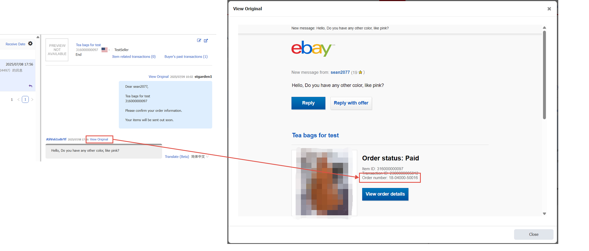 - When encountering the second situation, click 【View Original】 in the message to find the order number, then look it up in the order list.