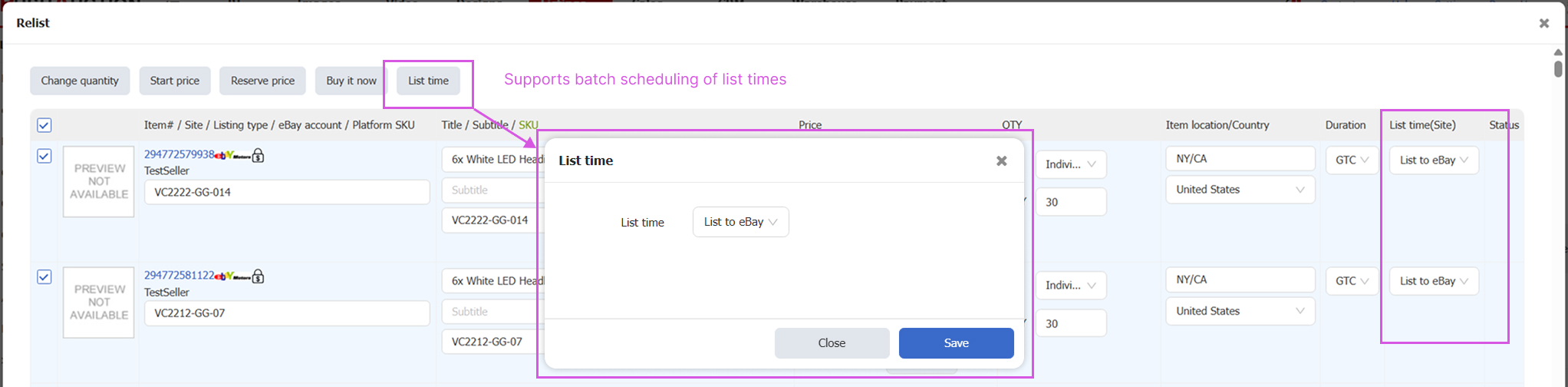 - Batch Scheduling Supported When Manually Relisting