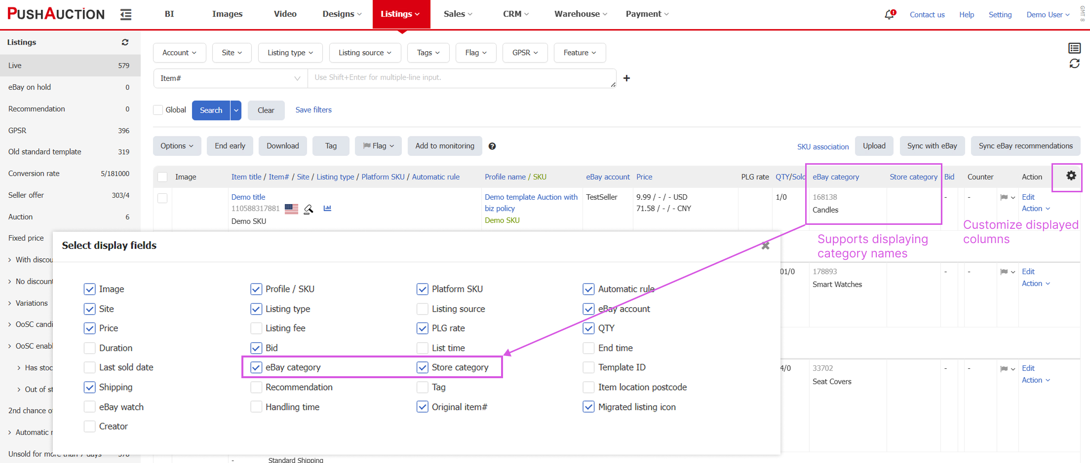 - Custom Columns on Profile and Listing Pages Now Support Displaying eBay Category Names