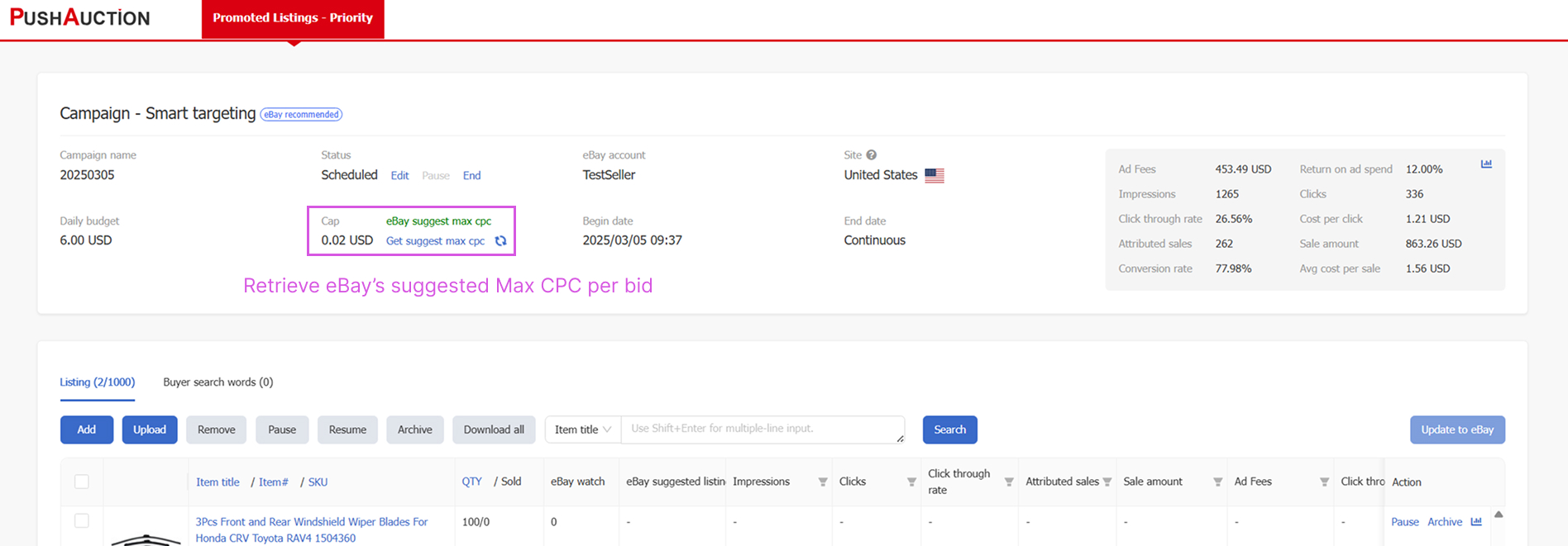 - PLP Smart Targeting Campaigns Support Retrieving eBay Suggested Max CPC