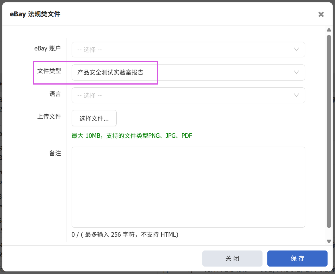 eBay法规类文件新增 “Safety Test Lab Report" 文件类型,即 ”产品测试实验室报告“ 。卖家可直接在系统提交此类报告到eBay;