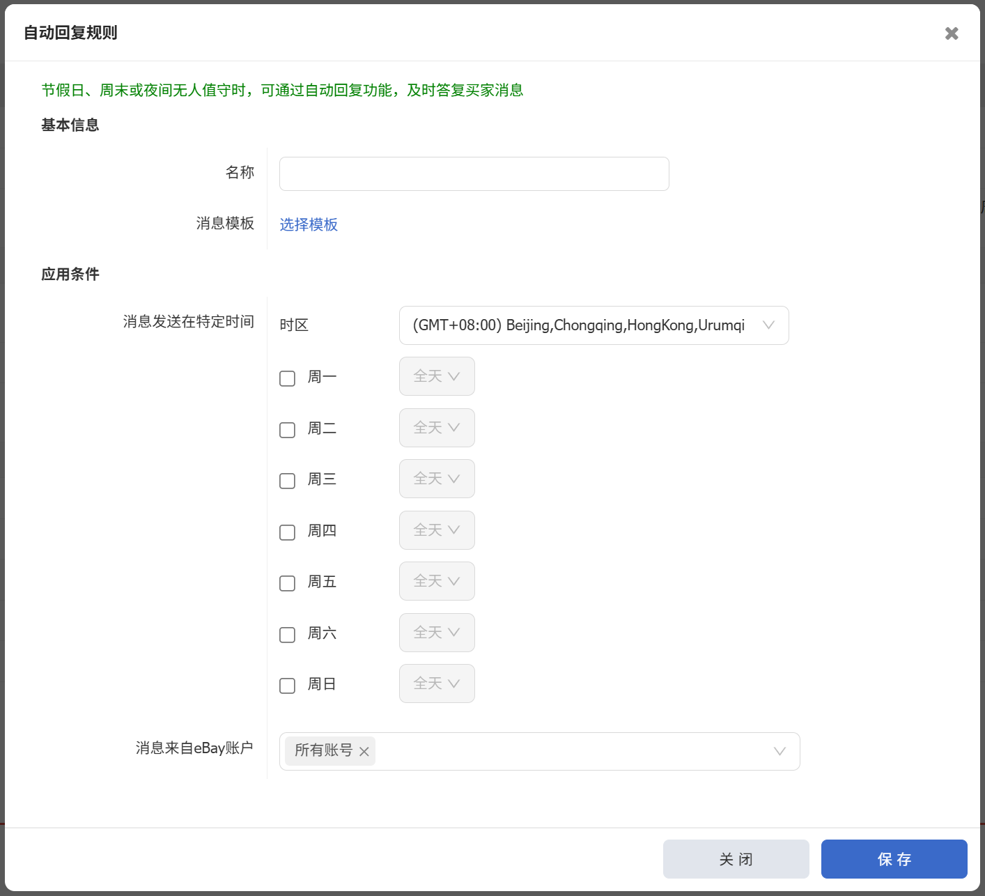 节假日、周末或夜间无人值守时,可通过自动回复功能,及时回复买家消息,提升购物体验和满意度;