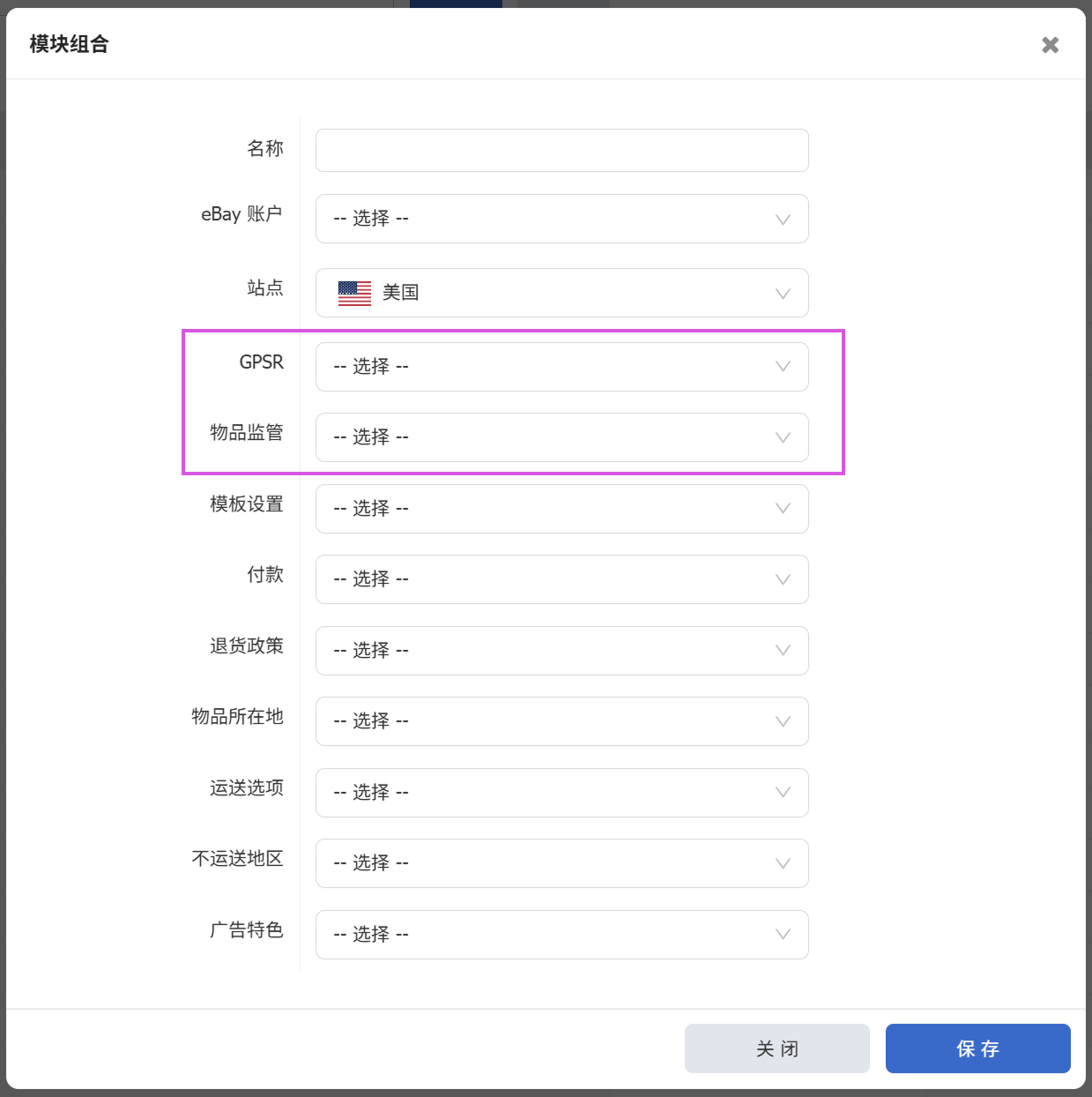 模块组合新增GPSR和物品监管。创建listing时,卖家可先把常用信息保存为模块,并通过模块组合一次性导入多个模块,大幅减少重复填写;