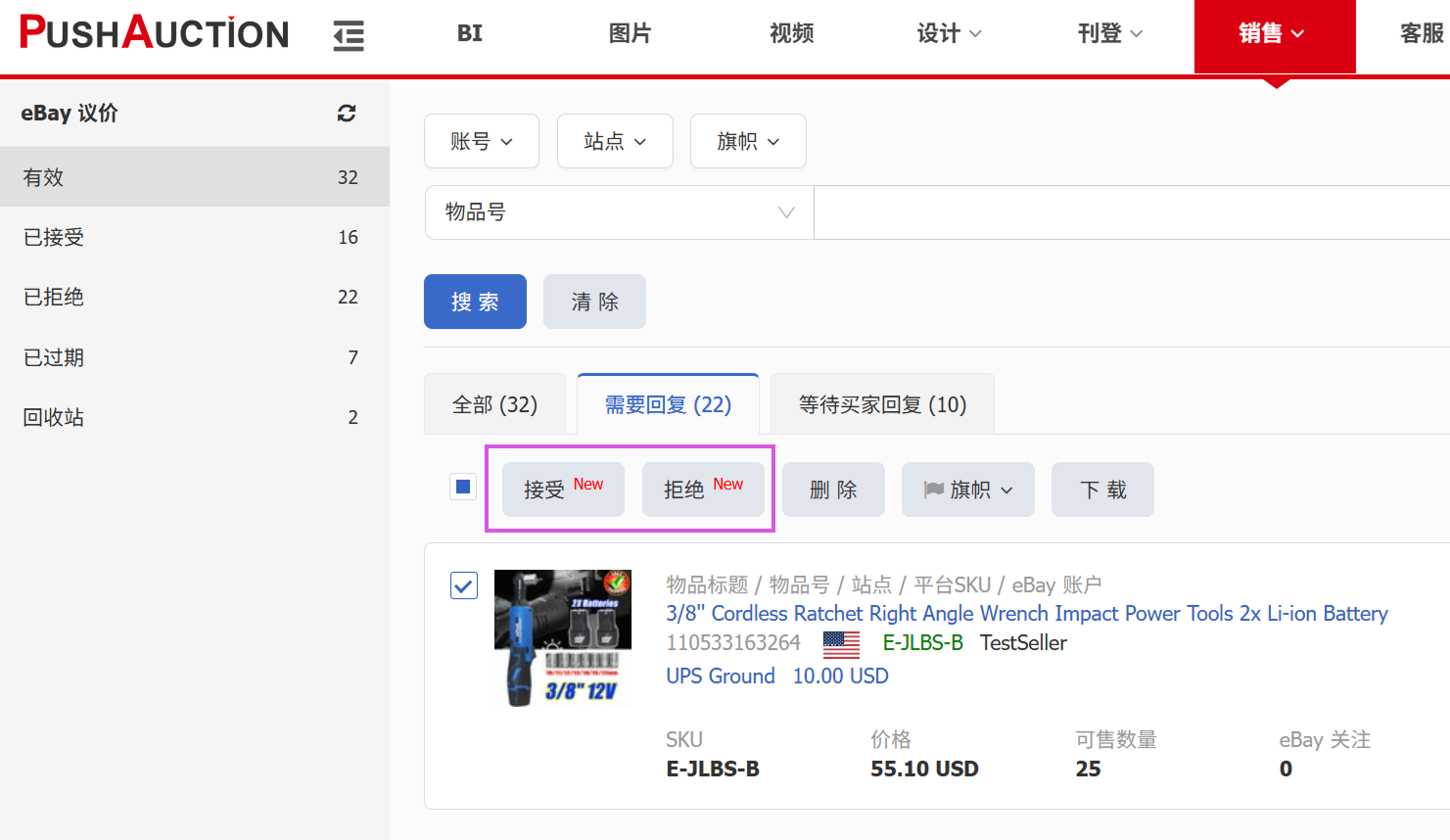 路径:销售 > eBay议价 > 有效