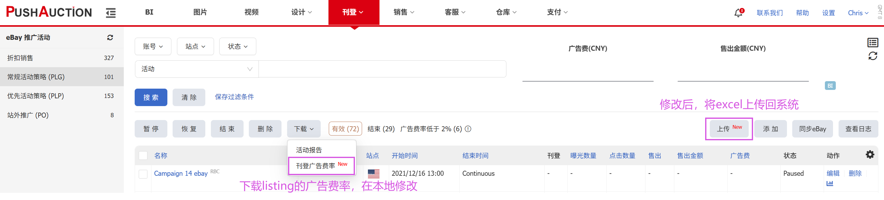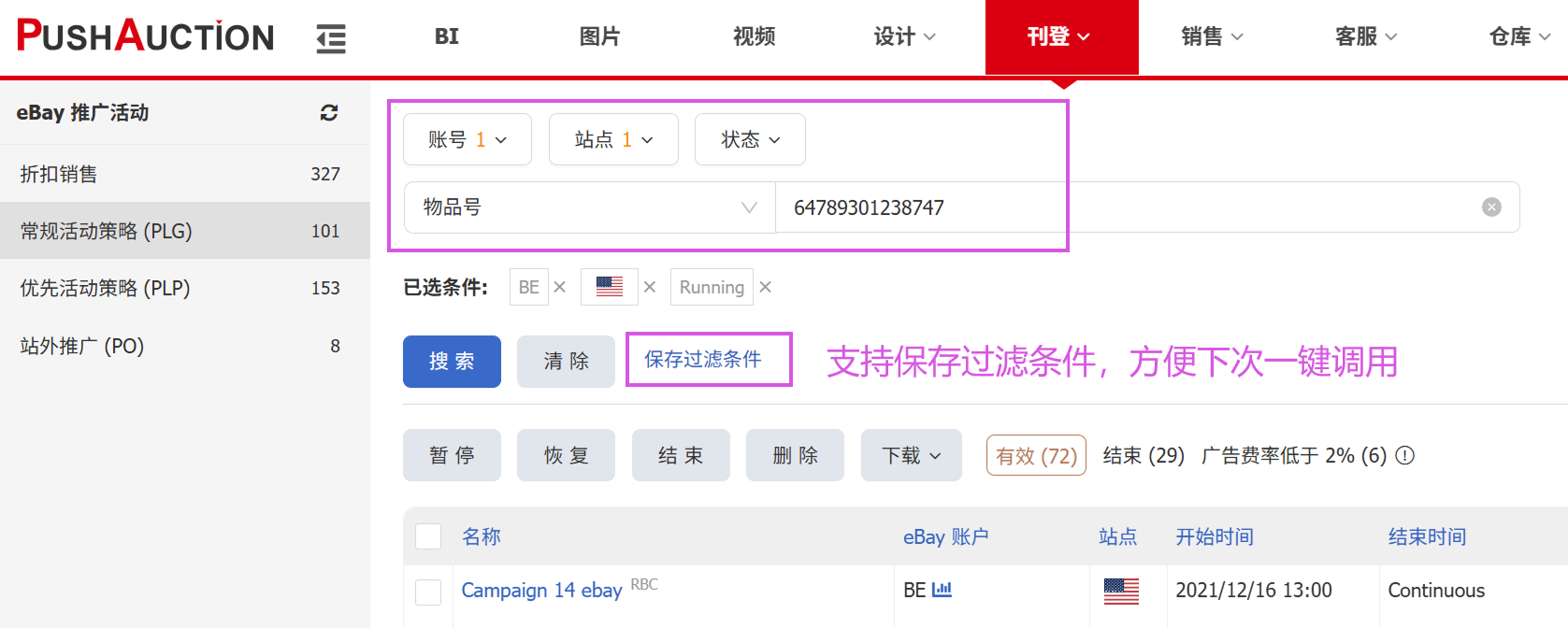 路径:刊登 > eBay推广活动 > 常规活动策略 (PLG)